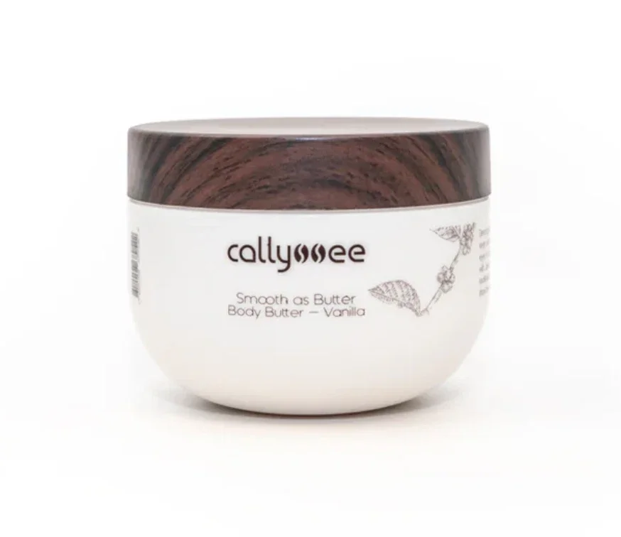 Callyssee Smooth-as-Butter Body Butter in the Vanilla scent. It is a decadent treatment designed to provide an extra boost of moisture for dry skin, making it appear smoother and Deeply hydrates rough patches, nourishes the skin, and leaves it feeling soft and long-lasting.more supple. .
