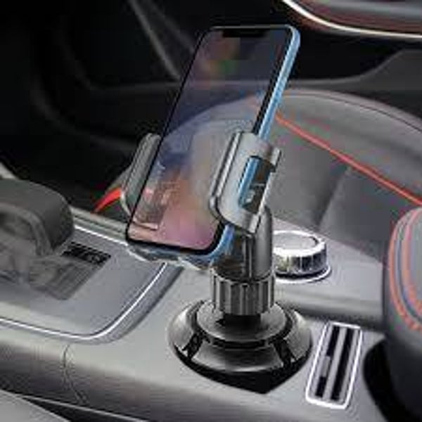 Cell Phone Holder is an adjustable car mount designed to fit into any automobile beverage holder. It features a 6-inch flexible aluminum gooseneck that allows for customizable height and viewing angles.